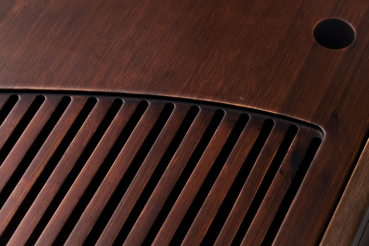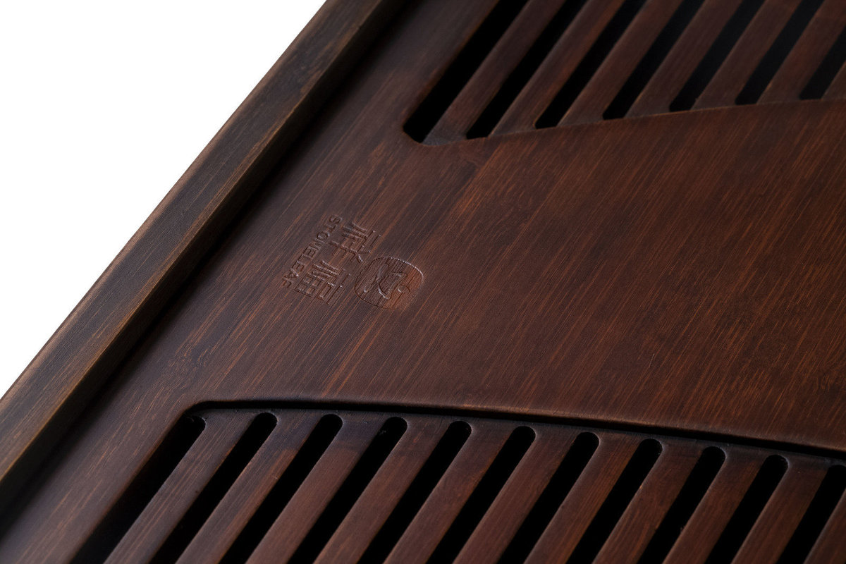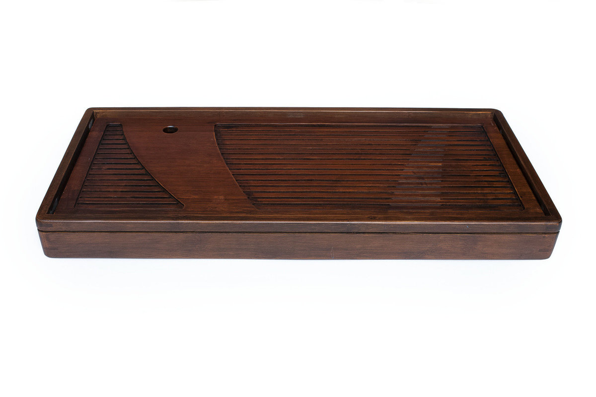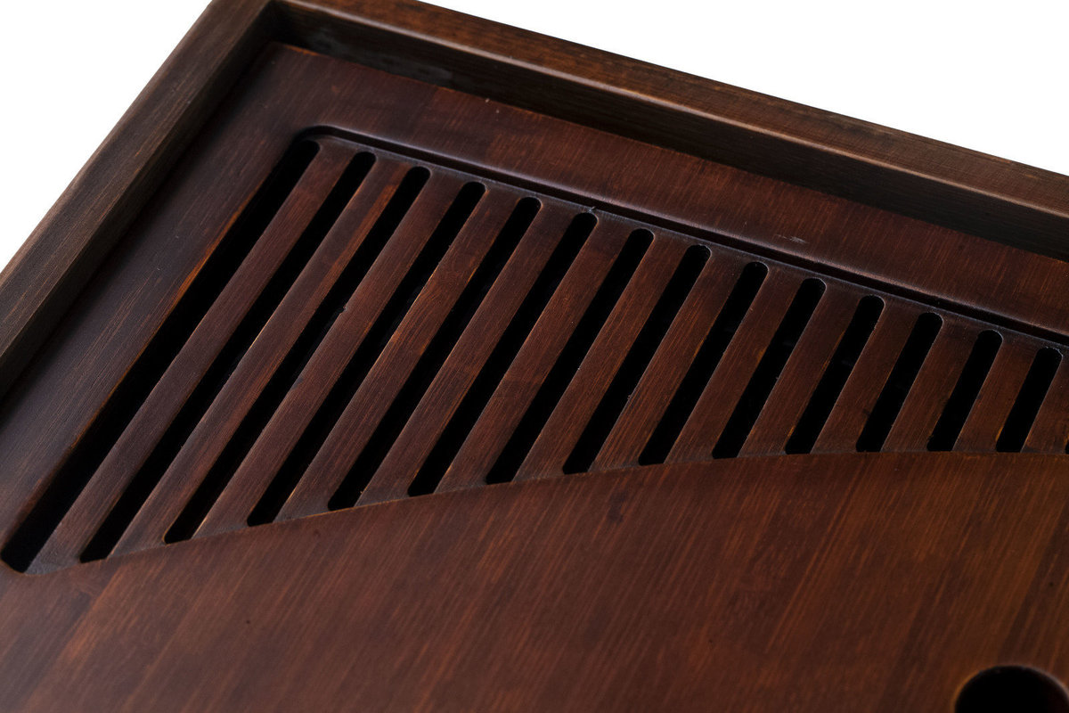 Лаконичная чабань из прессованного бамбука необычного тёмного цвета. Сделана просто и со вкусом, что называется – идеально впишется практически в любой интерьер. Позволяет организовать чаепитие для 3-4 гостей. В комплекте шланг для отвода жидкости.