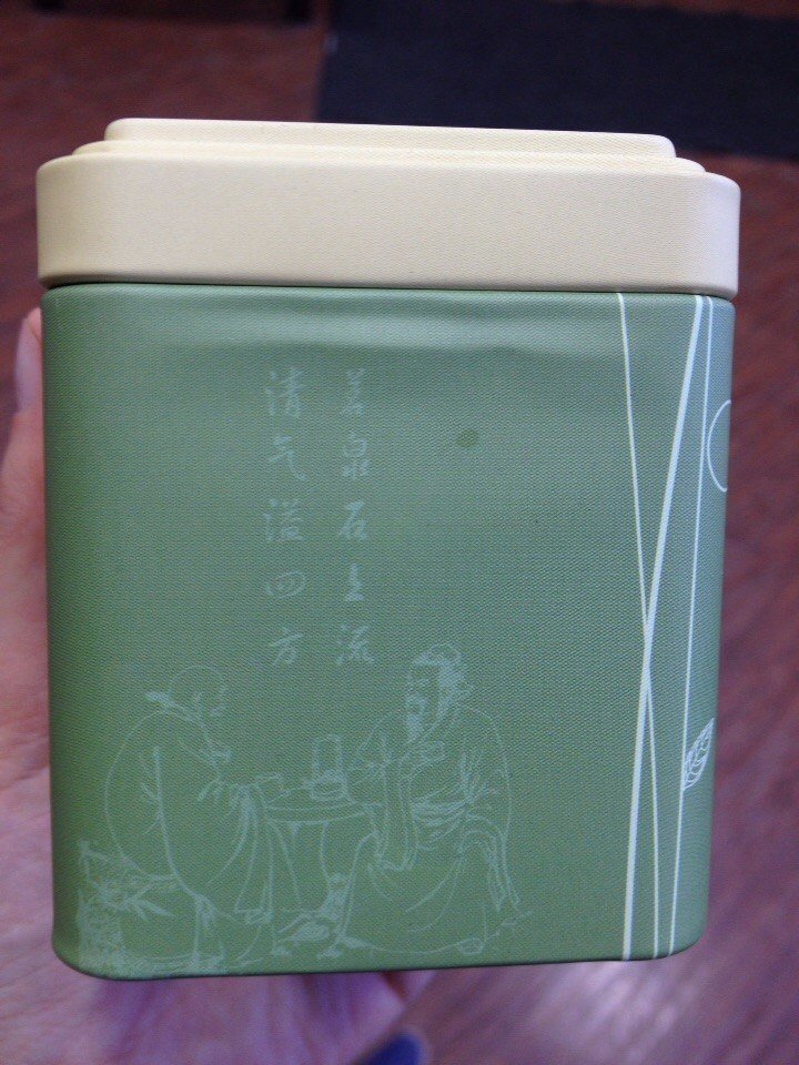 Симпатичная металлическая баночка с ненавязчивым рисунком и мягкими цветами. Удобный средний размер, можно брать с собой. Чайница вмещает примерно 50-70 г чая. Имеется дефект на корпусе баночки.