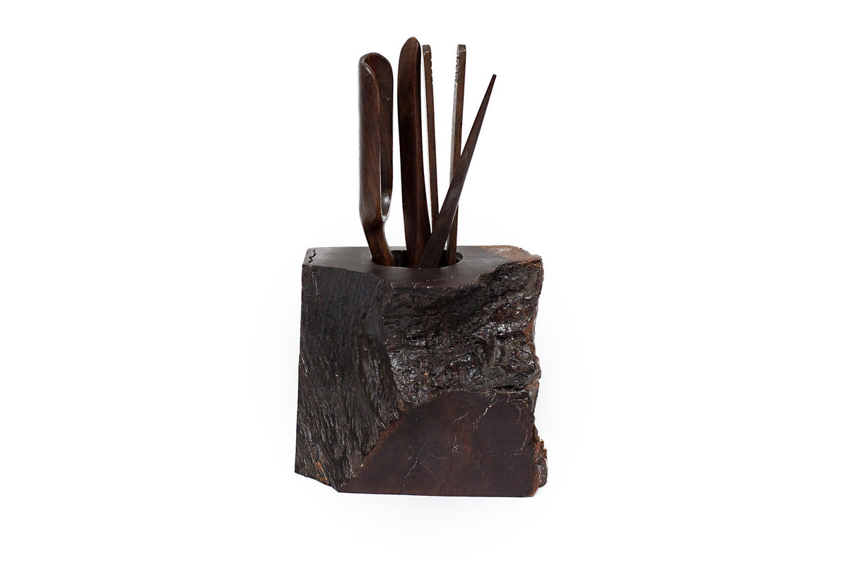 Роскошный набор чайных инструментов в подставке из цельного спила дерева. В комплекте: лопатка для чая, совочек для чая, игла для чайника. Дефект: отсутствуют щипцы. К набору легко можно подобрать другие.